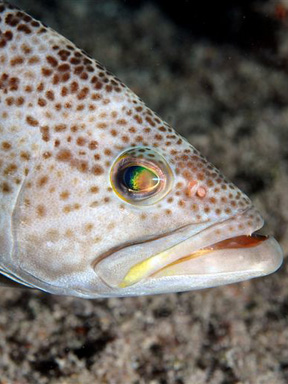 Description: Grouper Bend offers excellent habitat. The top of the 3rd reef here is 45'-50'. The western facing ledge drops off to 65'-72' to the sand. There is a false ledge to the west of the main ledge. If you venture eastward, form the main ledge, you will eventually reach the edge of the reef at 80'-90'. Grouper are occasionally seen here. One theory is they move back and forth to the wrecks east of the ledge.