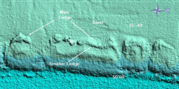 Description: Nice shallow reef with an eastern and western facing ledge, running parallel to the shoreline. Tropicals are abundant here. This area is also known for lobster. A great training area in the sand on the western edge. Nurse sharks are seen here resting under the western ledge.