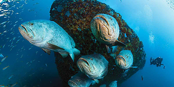 Description: The MV Castor is a 258 feet long by 37 feet wide Dutch freighter. The bow points south. Over the years the ship has been broken up by hurricanes the stern section containing most of the house structure has rolled on it's starboard side. The deck is 95-100 feet and the bow rises to about 80 feet. Adorned by orange cup corals and sponges, the Castor is one of the most colorful wrecks on the Palm Beach Coast. The Castor is home to a community of Goliath Groupers. However, beginning the end of July during spawning season the numbers can reach 100! The Castor is home to one of the larges aggregations in the State of Florida, making it a must see for divers. Small bait fish called Scab come in schools large enough to shroud most of the wreck. They come to feed on the eggs released by the giant groupers during spawning, the scad in turn become prey for schools of Jacks and Barracuda, a photographer's dream!