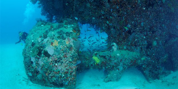History: Formerly one of 2 McAllister Towing Co. harbor tugs in New York, she was built like a tank. This could explain why the tug is still in could shape. Even though she is not big by wreck standards there still are plenty fish to see. A 41' steel "Ragboat" called the Bruce Mueller lies to the SE in swimming distance.