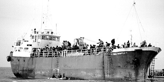 History: The ship was built in 1969 and named the Golden Venture. It was registered Panamanian to operate only in waters around Singapore. But by the early 1990's, it was being used by smugglers to illegally ferry people and drugs. On June 6, 1993 the Golden Venture ran aground on Rockaway Beach in Queens New York. The ship was smuggling 286 illegal immigrants from China. In their attempts to flee the stranded ship and get to shore in the United States, ten people drowned. The ship was later sold and renamed the United Caribbean and was used a s a cargo vessel in the Caribbean. The ship eventually became part of the Palm Beach Artificial Reef Program and was sunk on August 22, 2000. There are several movies chronicling the horrifying journey of the 286 immigrants.